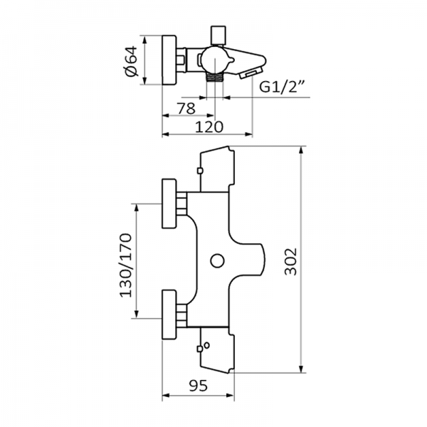 1) Змішувач для ванної GRB Winner термостатичний хром