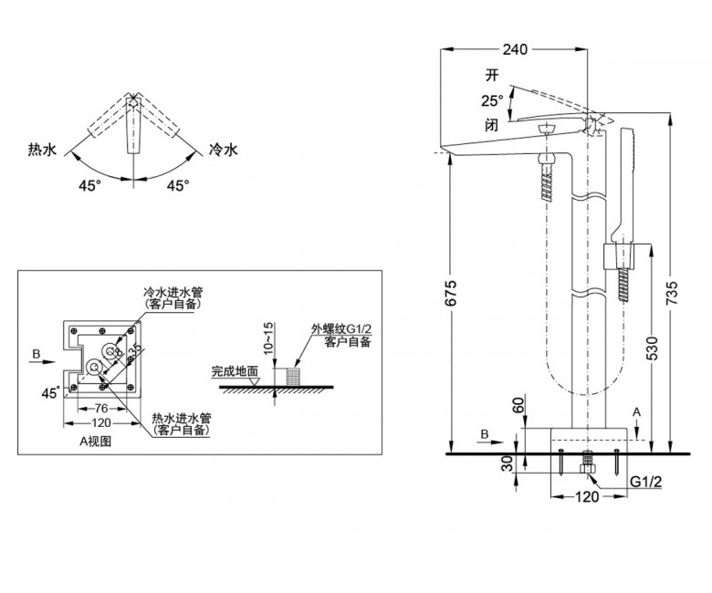 - Водяне тиск: 0.05MPa ~ 0.75MPa