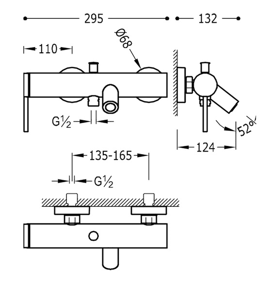 Змішувач для ванни Tres Mono-Term одноважільний з ручним душем хром 20117001