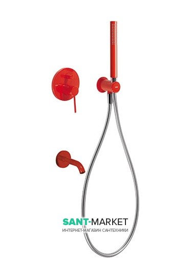 Змішувач для ванни Tres Study colors вбудований з ручним душем червоний