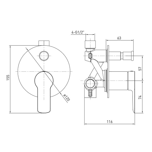 1) Змішувач для ванної Volle Libra змішувач прихованого монтажу без виливу з двома ручками хром / чорний