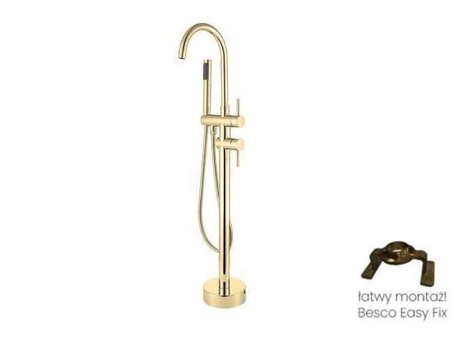 Змішувач для ванної Besco Illusion II з душовим гарнітуром золото BW-III-ZL