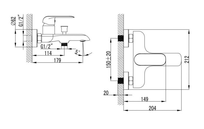 1) Змішувач для ванної Devit Iven змішувач настінний латунь хром