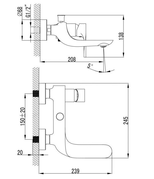 Змішувач для ванної Devit Optima змішувач настінний латунь хром