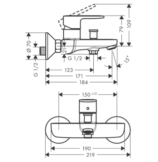 Змішувач для ванної Hansgrohe Vernis Blend настінний одноважільний хром 6 шт