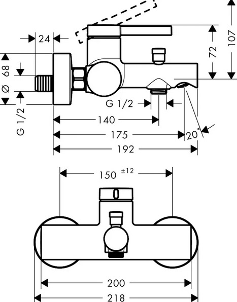 - Швидкість потоку води для носику для ванни в 3 бар: 20 л/хв