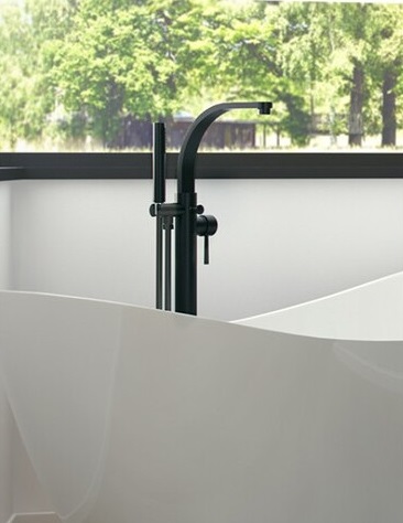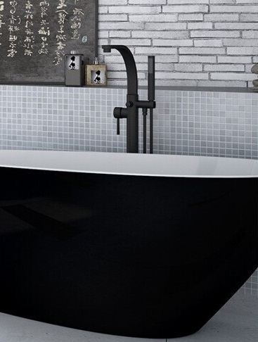 Змішувач для ванної кімнати Besco Decco I підлоговий з душовим гарнітуром чорний матовий BW-DI-CZ