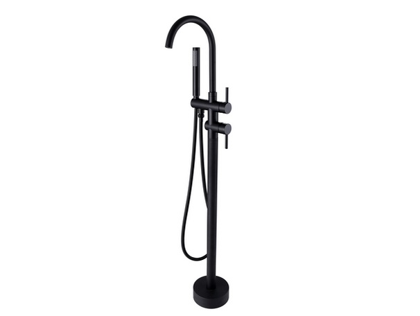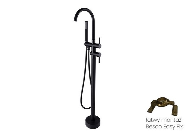 Змішувач для ванної кімнати Besco Illusion I підлоговий з душовим гарнітуром чорний матовий BW-II-CZ