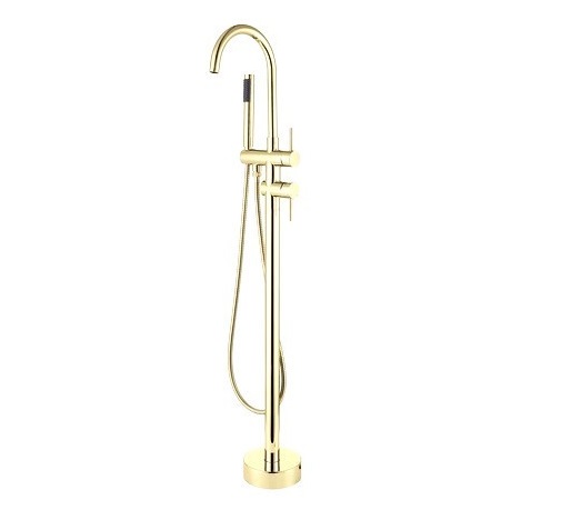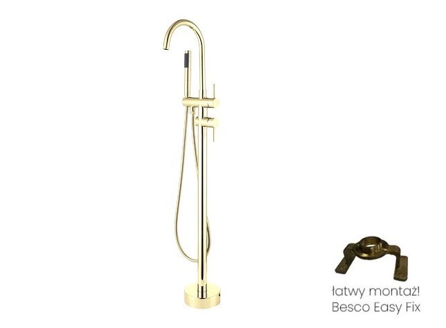 Змішувач для ванної кімнати Besco Illusion I підлоговий з душовим гарнітуром яскраве золото BW-II-JZ