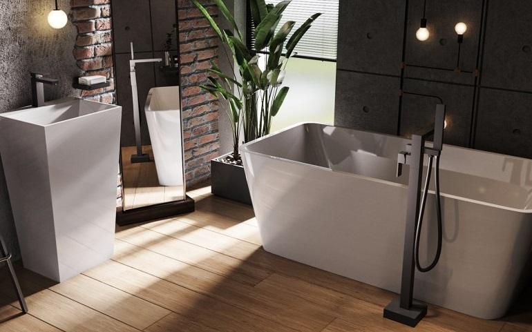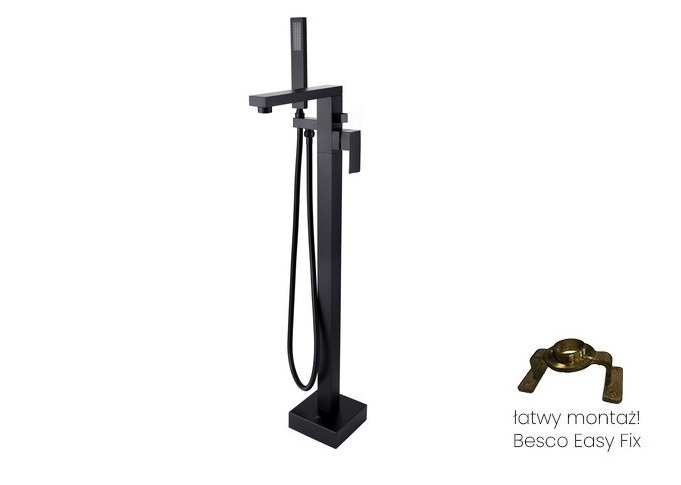 Змішувач для ванної кімнати Besco Varium підлоговий з душовим гарнітуром чорний матовий BW-V-CZ