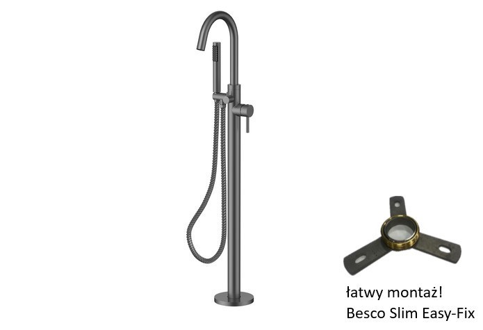 Змішувач для ванної кімнати Besco Veo II з душовим гарнітуром графіт BW-VII-GR