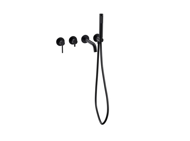 Змішувач для ванної кімнати Besco Veo настінний з душовим гарнітуром чорний матовий BW-V4P-CZ