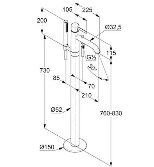 Змішувач для ванної кімнати Kludi Bozz підлоговий з душовим гарнітуром нікель PVD 38590N576