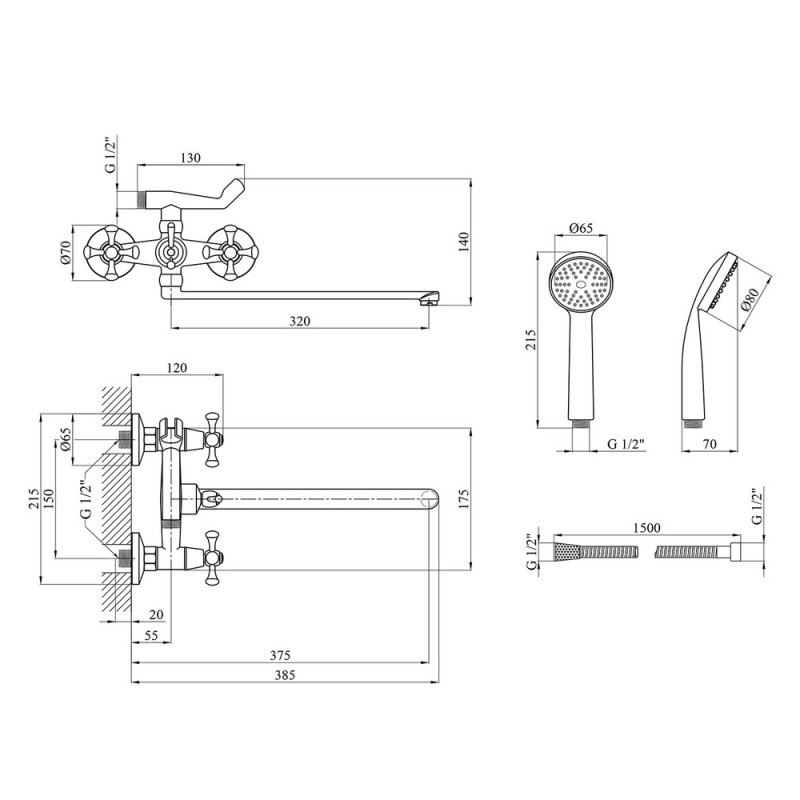 - Розділ: Комплекти змішувач для ванної з душовим гарнітуром