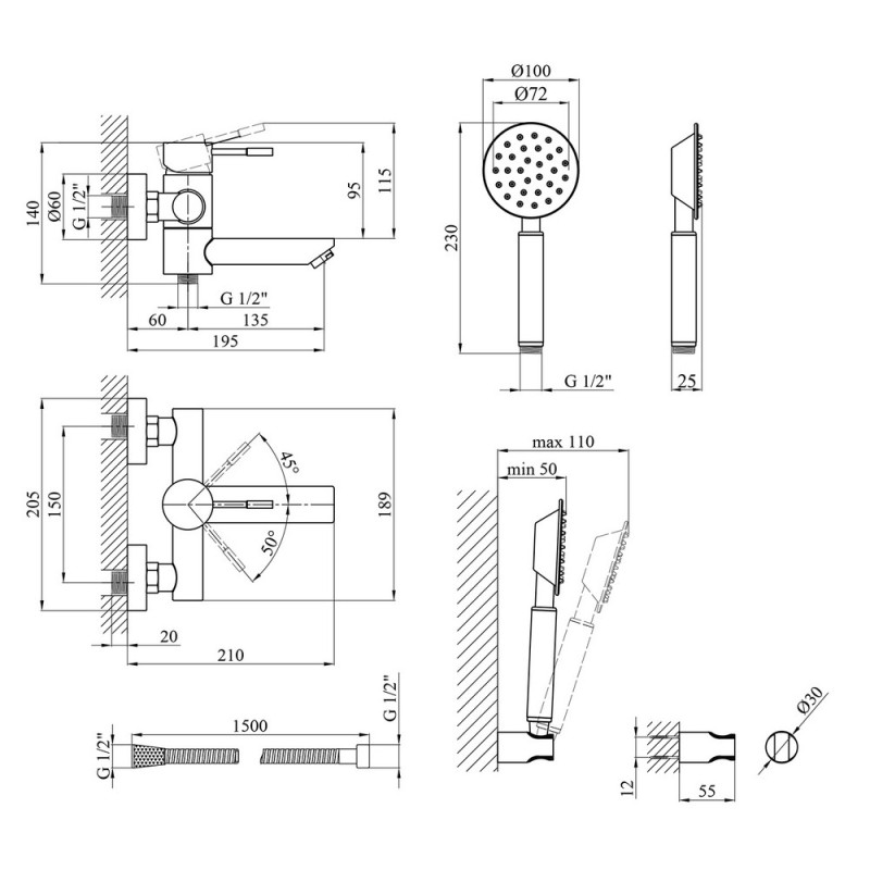 - Душовий набір в комплекті - ручний душ діаметром 100 мм зі зручним кріпленням і гнучким шлангом додає комфорту.використання.
