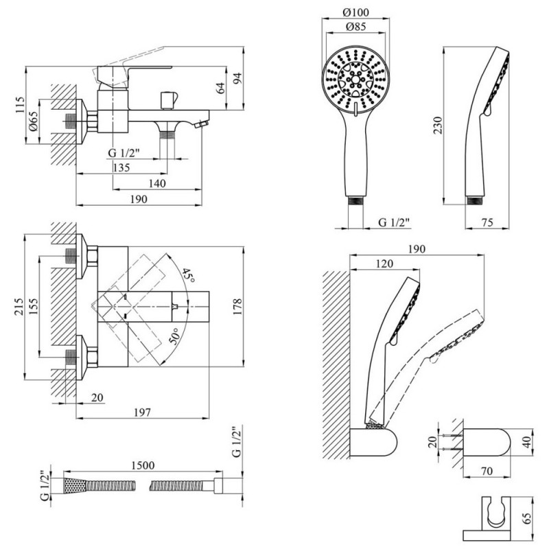 - Розділ: Комплекти змішувач для ванної з душовим гарнітуром