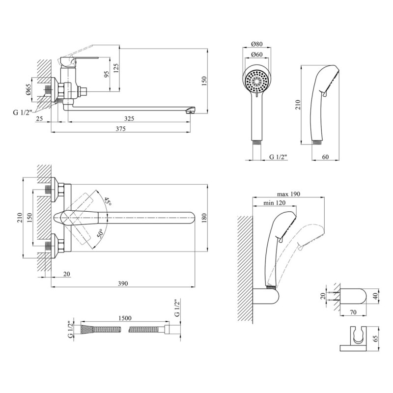 - Розділ: Комплекти змішувач для ванної з душовим гарнітуром