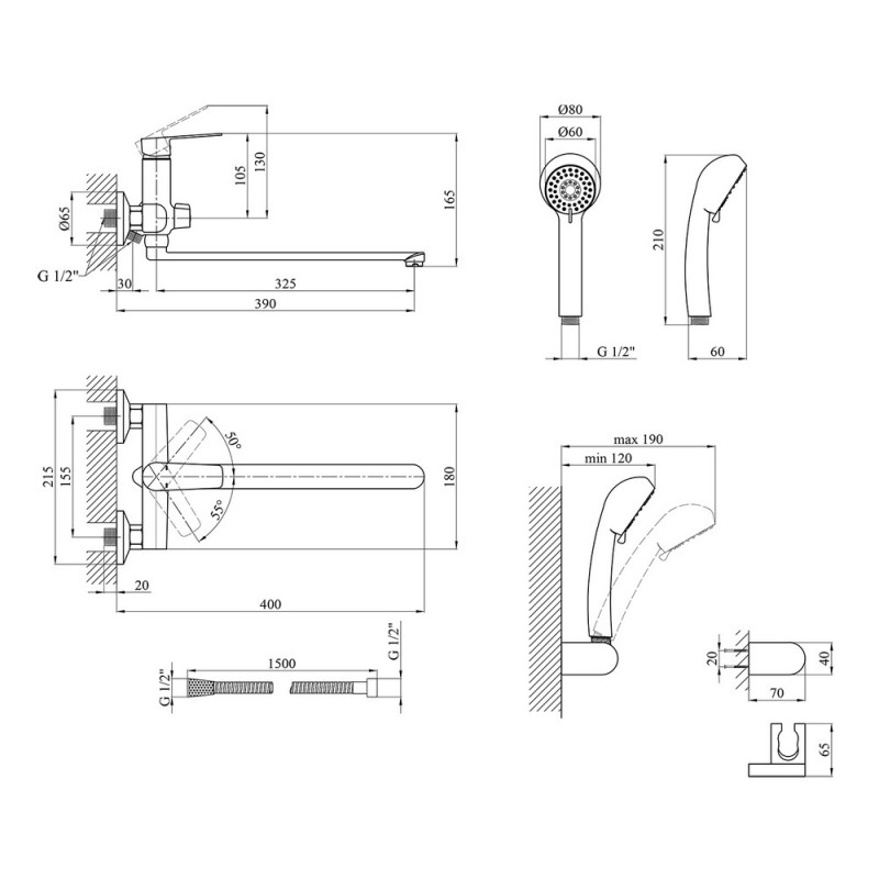 - Розділ: Комплекти змішувач для ванної з душовим гарнітуром