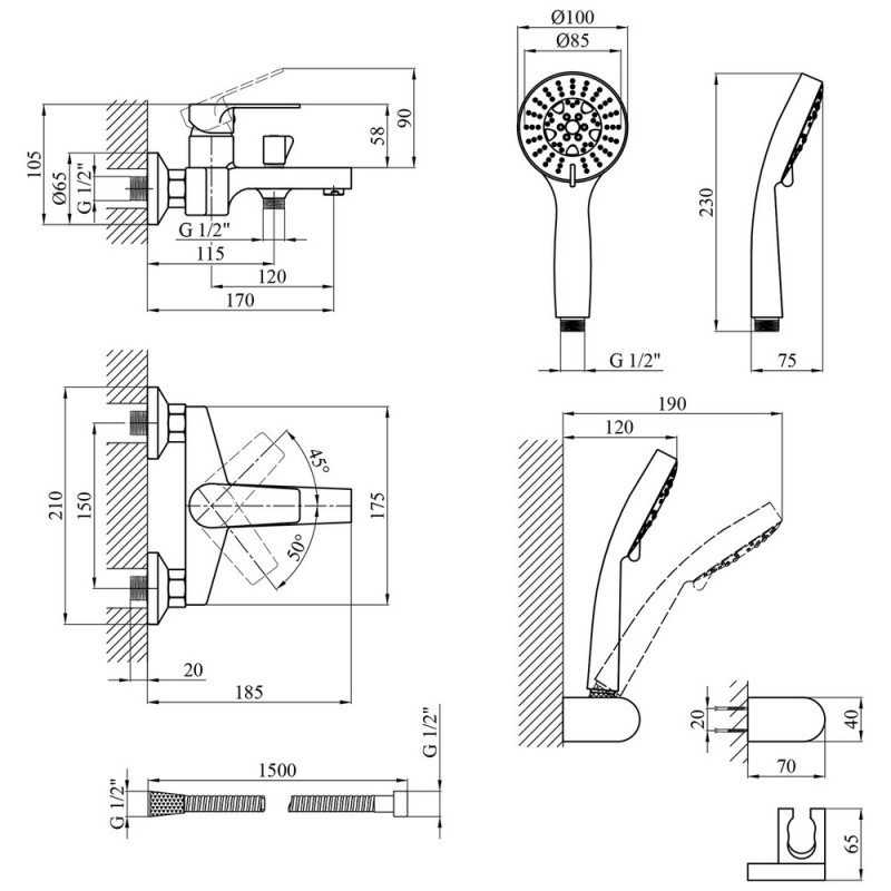 - Розділ: Комплекти змішувач для ванної з душовим гарнітуром