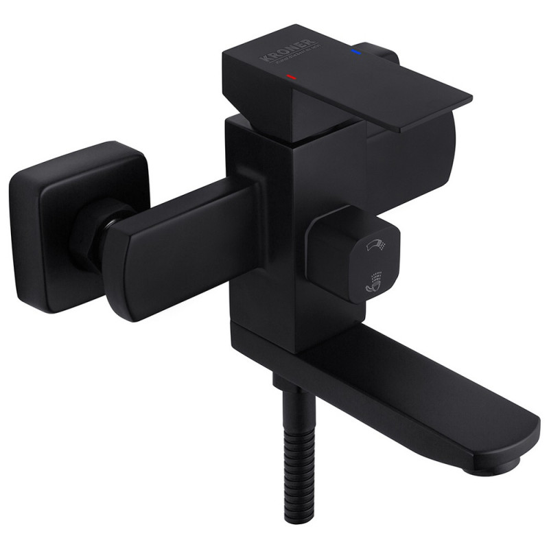 Змішувач для ванної Kroner KRP Edelstahl Kubus-SCH060 з душовою гарнітурою чорний