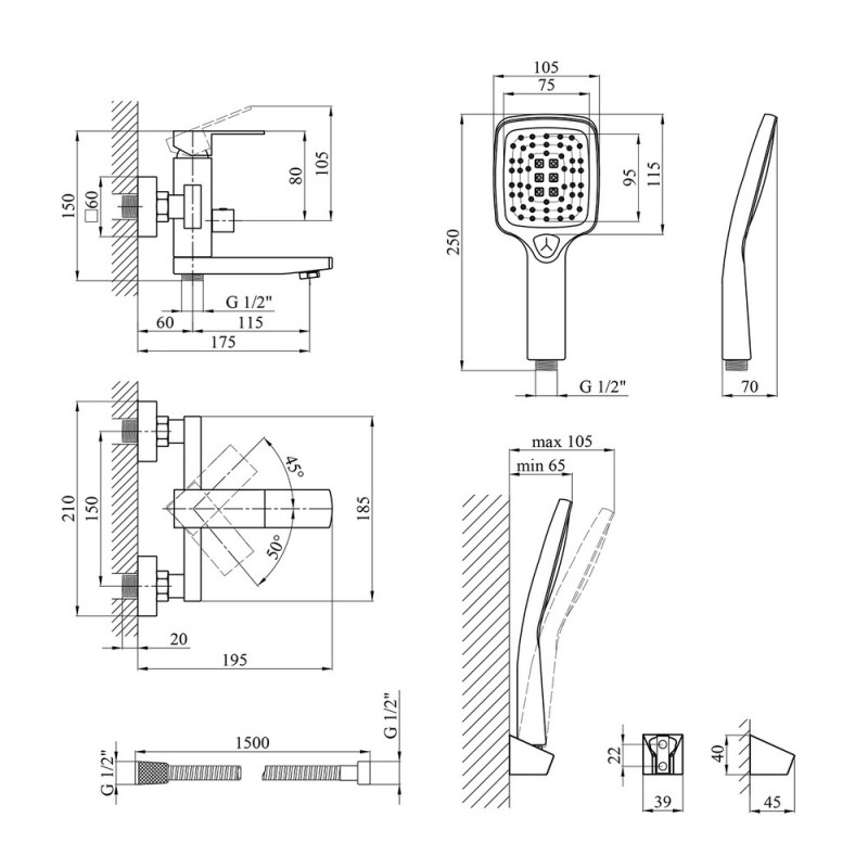 - Розділ: Комплекти змішувач для ванної з душовим гарнітуром