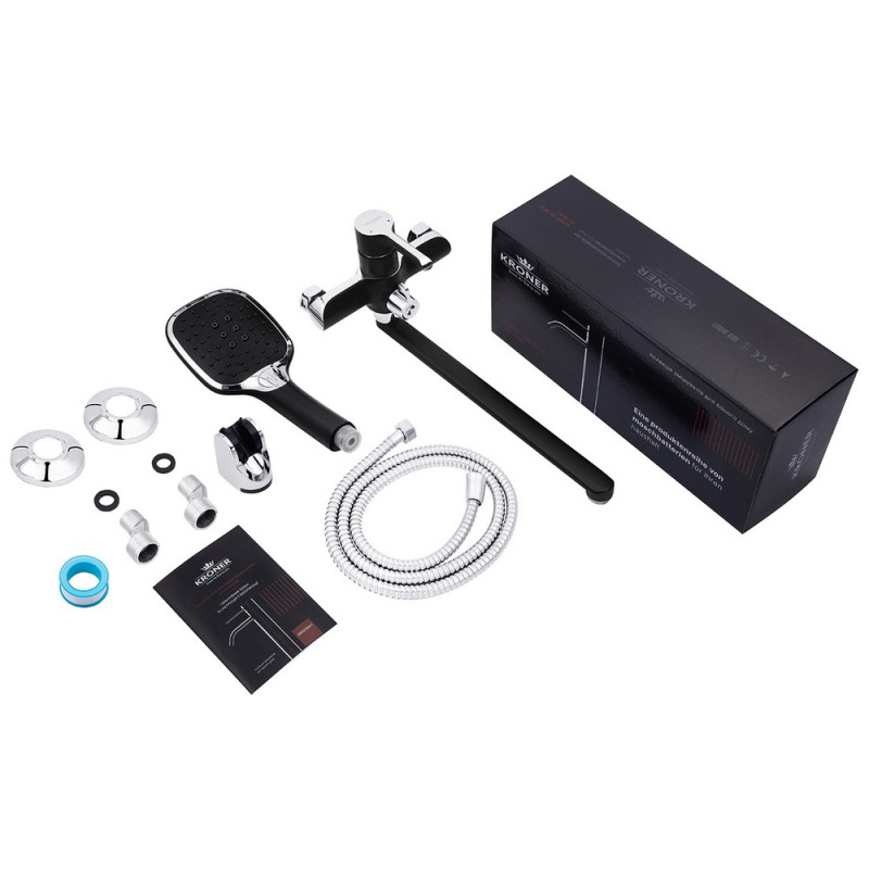 Змішувач для ванної кімнати Kroner KRP Essen-SCH070 з душовим гарнітуром хром/чорний CV024330