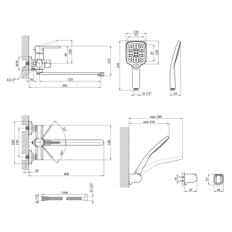 - Розділ: Комплекти змішувач для ванної з душовим гарнітуром
