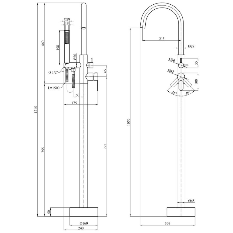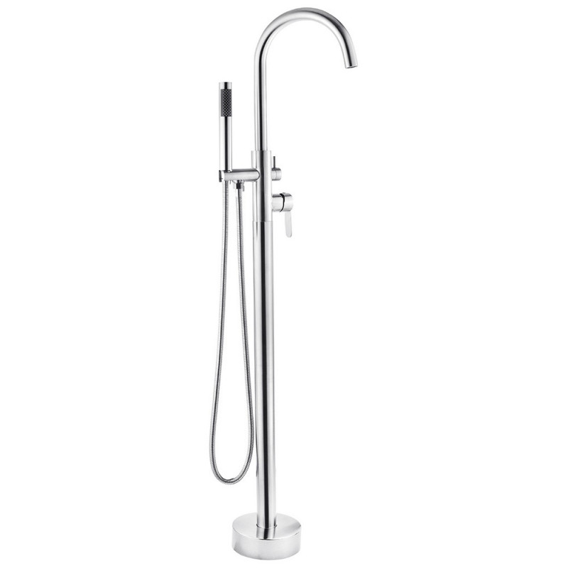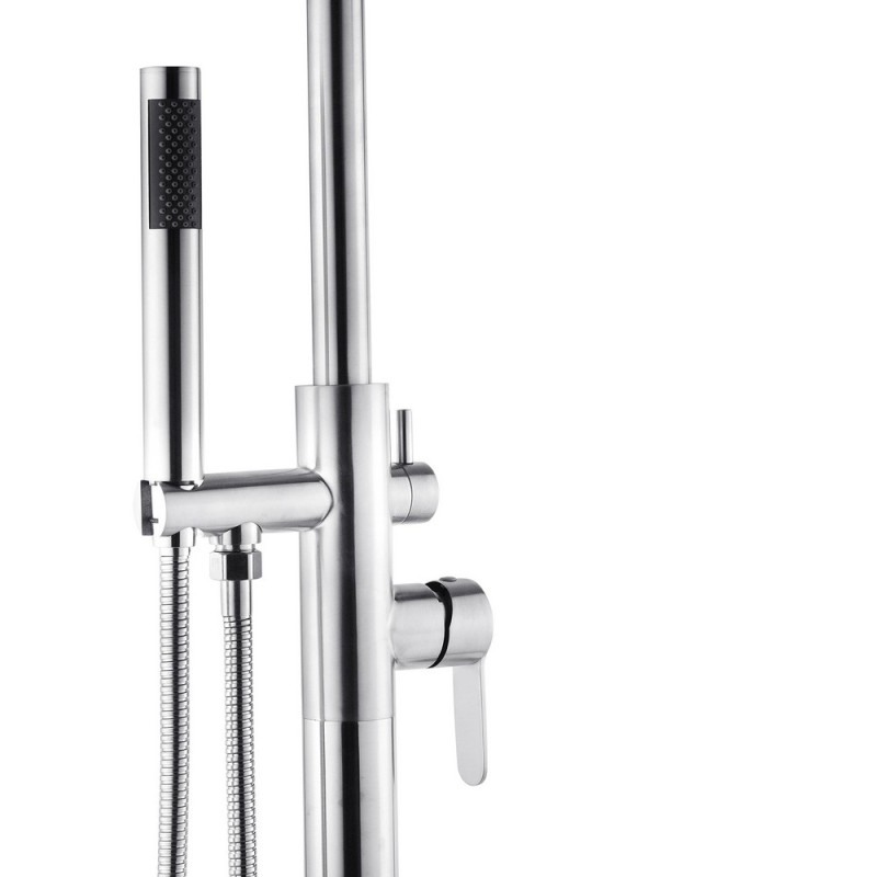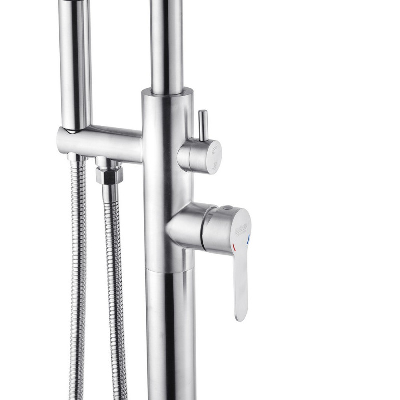 Окремостоячий змішувач для ванни Kroner KRP Edelstahl Klassisch - ESG077розроблений з урахуванням зовнішнього вигляду та функціональності, він є альтернативою класичномузмішувачі для ванної кімнати. Виготовлений з харчової нержавіючої сталі SUS 304, що забезпечує довговічність і безпеку використання виробу. Змішувач оснащений керамічним картриджем діаметром 35 мм, який забезпечує плавне регулювання температури і тиску за допомогою важеля. Оснащений перемикачем ванна/душ, вихід для підключення душового шланга діаметром 1/2". Встановлюється на один отвір за допомогою гнучких шлангів з підключенням 1/2".