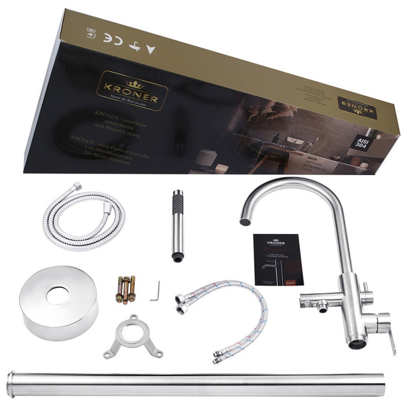 Kroner — німецький бренд, що спеціалізується на виробництві змішувачів, раковин і аксесуарів для ванної кімнати та кухні. Бренд цінується за німецьку якість, поєднання сучасних технологій і суворого контролю виробництва з доступною ціною. Продукція Kroner відрізняється сучасним дизайном і практичністю; вони виготовляються з використанням передових технологій лиття, цинкування та шліфування.