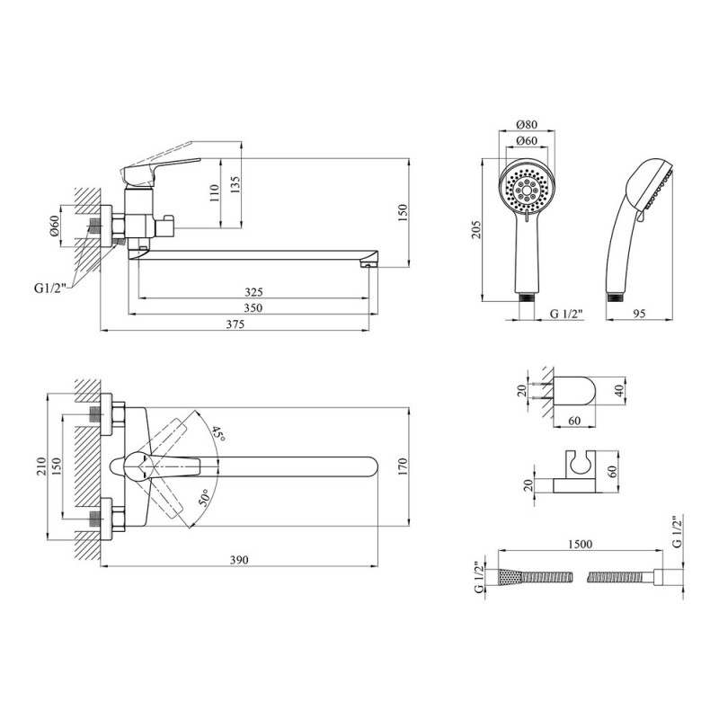 - Розділ: Комплекти змішувач для ванної з душовим гарнітуром