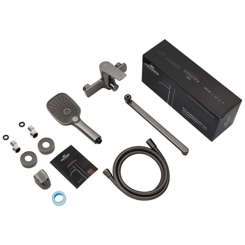 Змішувач для ванної кімнати Kroner KRP Makon-GRP070 з душовим гарнітуром графіт CV033861
