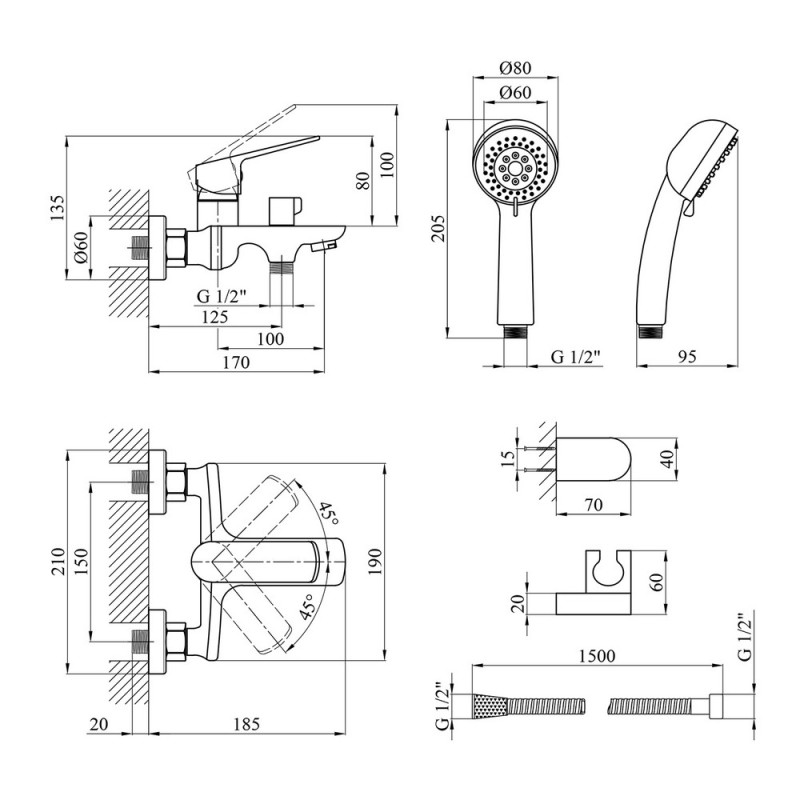 - Розділ: Комплекти змішувач для ванної з душовим гарнітуром