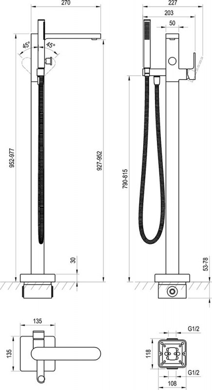 Базовий корпус RB 07A.50 не входить в комплект змішувача для підлоги і купується додатково. R-box містить матеріал для кріплення до підлоги, але не включаєз'єднання для водопроводу або інших сантехнічних матеріалів.