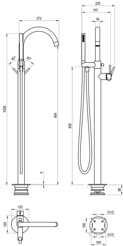 - Розділ: Комплекти змішувач для ванної з душовим гарнітуром