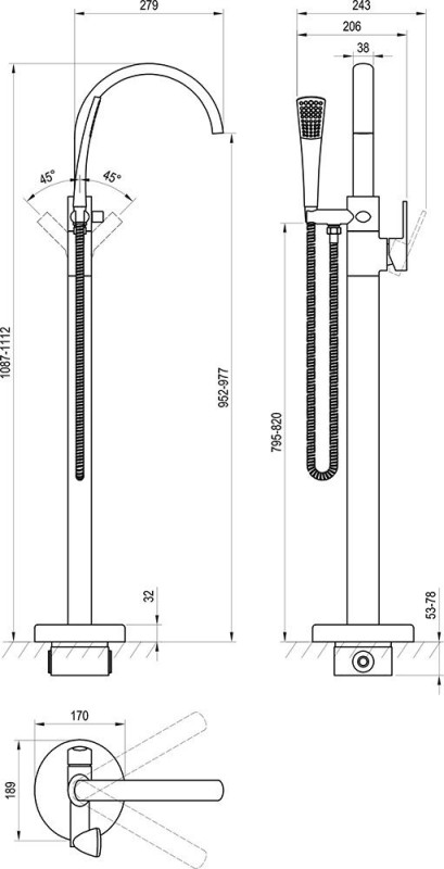 - Розділ: Комплекти змішувач для ванної з душовим гарнітуром