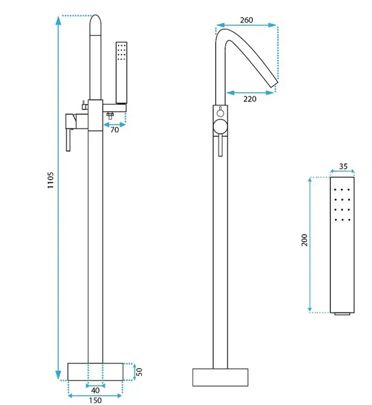 Змішувач для ванної кімнати Rea Aras підлоговий з душовим гарнітуром чорний REA-B2717