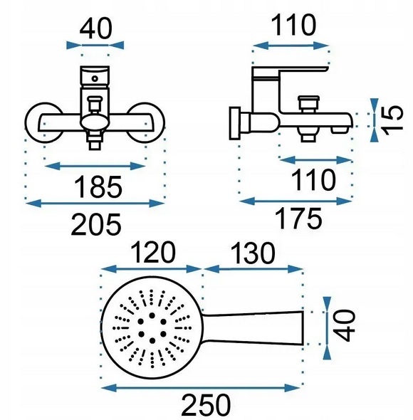 - Дивитися інші: Комплекти змішувач для ванної з душовим гарнітуром Rea