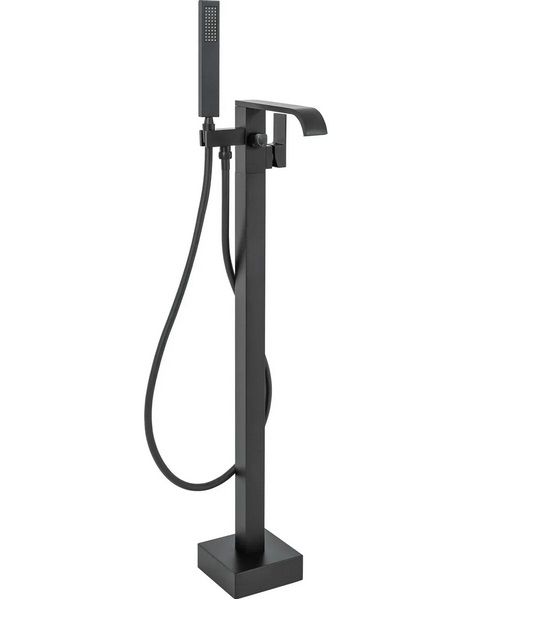 Змішувач для ванної кімнати Rea Carat підлоговий з душовим гарнітуром чорний REA-B5423