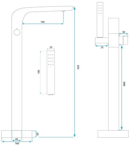 Змішувач для ванної кімнати Rea Clark підлоговий з душовим гарнітуром хром REA-B5301