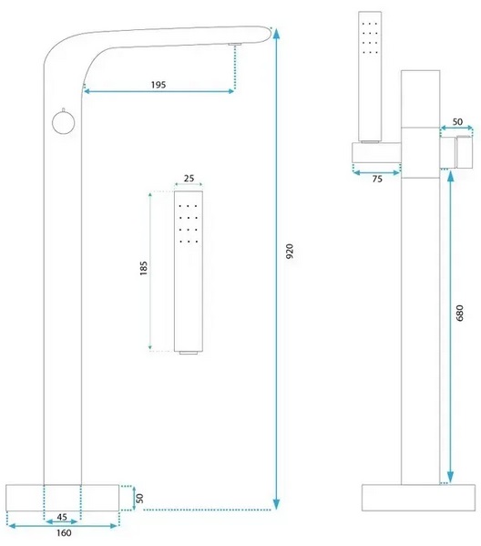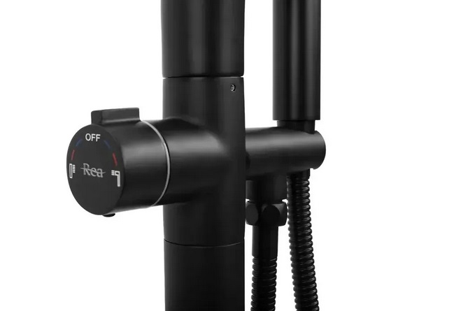 Змішувач для ванної кімнати Rea Clark підлоговий з душовим гарнітуром чорний REA-B5300