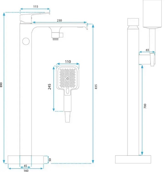 Змішувач для ванної кімнати Rea Hass підлоговий з душовим гарнітуром хром REA-B6400