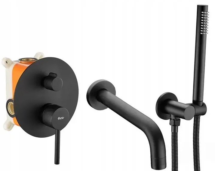 Змішувач для ванної кімнати Rea Lungo одноважільний з душовим гарнітуром чорний REA-P6300