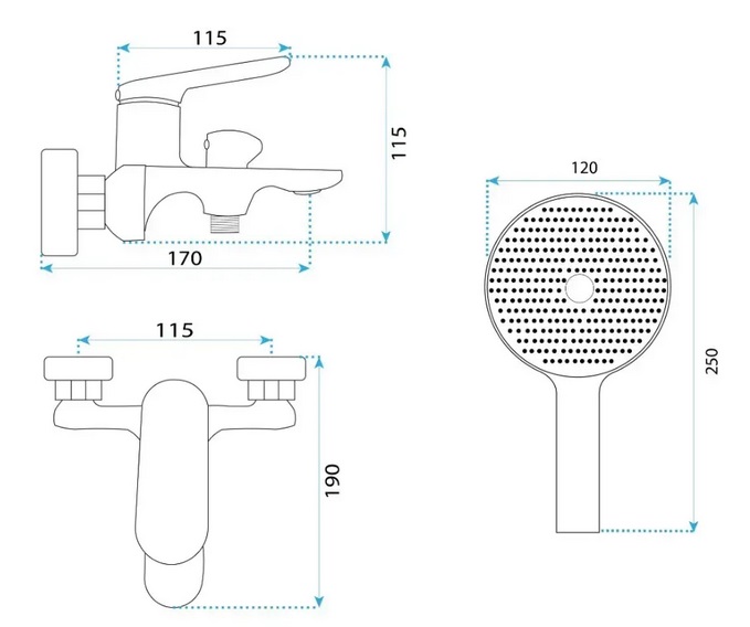 - Дивитися інші: Комплекти змішувач для ванної з душовим гарнітуром Rea