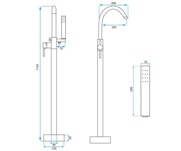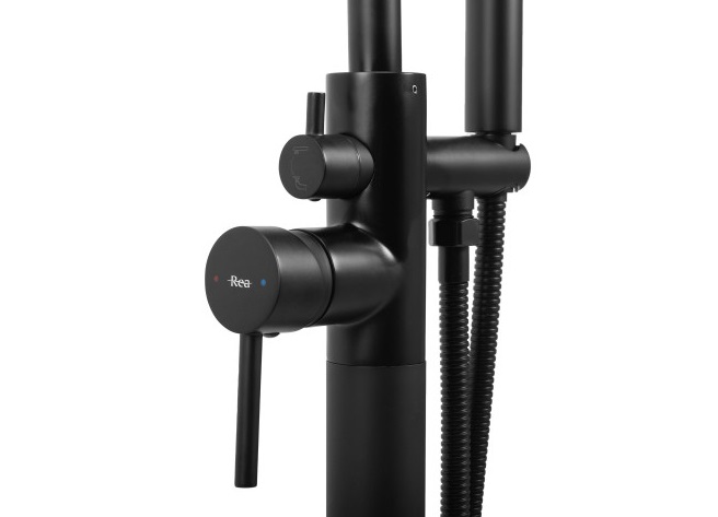 Змішувач для ванної кімнати Rea Mono підлоговий з душовим гарнітуром чорний REA-B2714