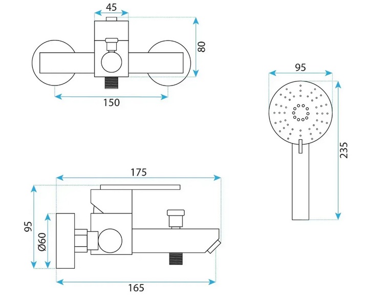 - Дивитися інші: Комплекти змішувач для ванної з душовим гарнітуром Rea