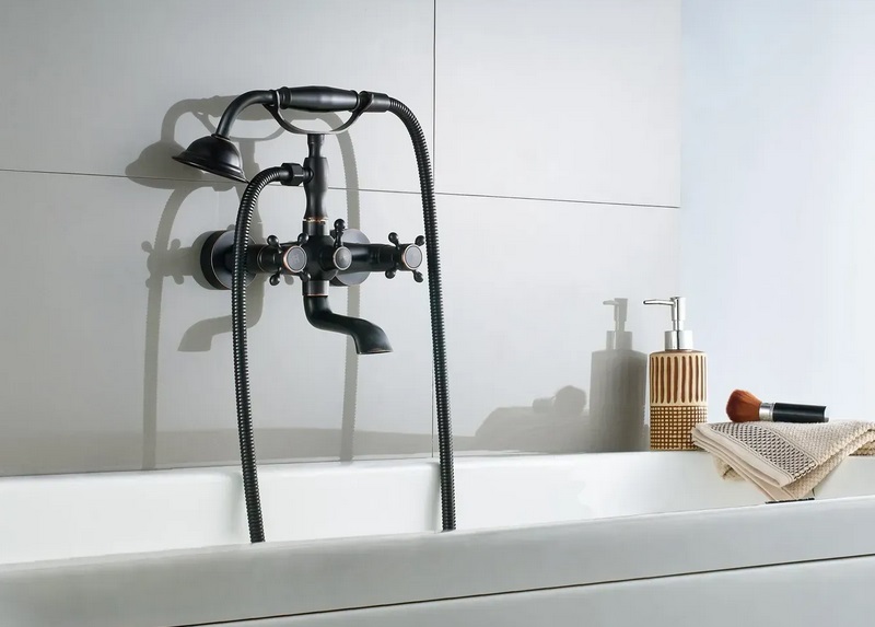 змішувач для ванної кімнати ретро -два -крем з душовою головкою чорного кольору