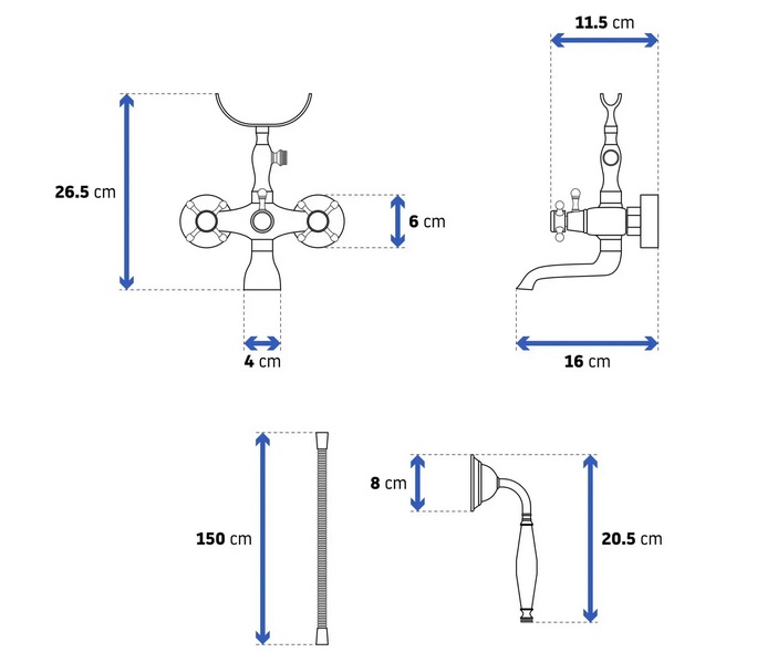 - Дивитися інші: Комплекти змішувач для ванної з душовим гарнітуром Rea