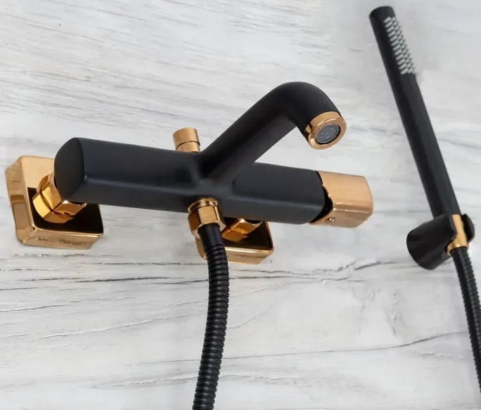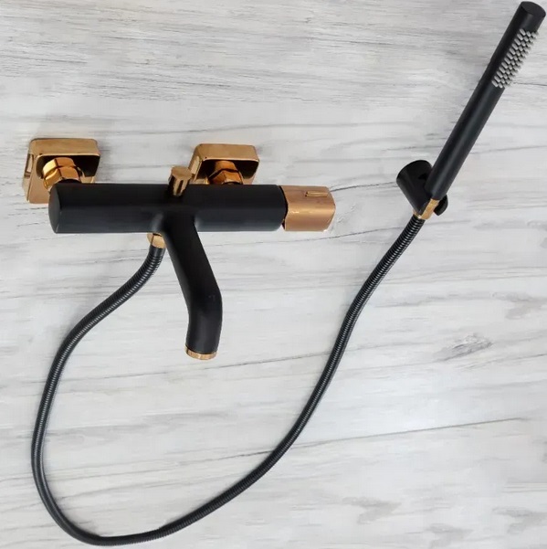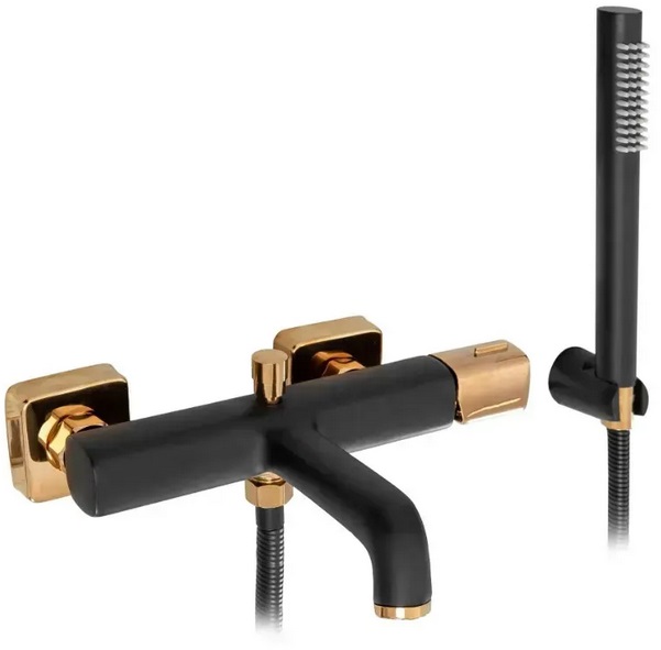 Змішувач для ванної кімнати Rea Salto одноважільний з душовим гарнітуром чорний/рожеве золото REA-B6352