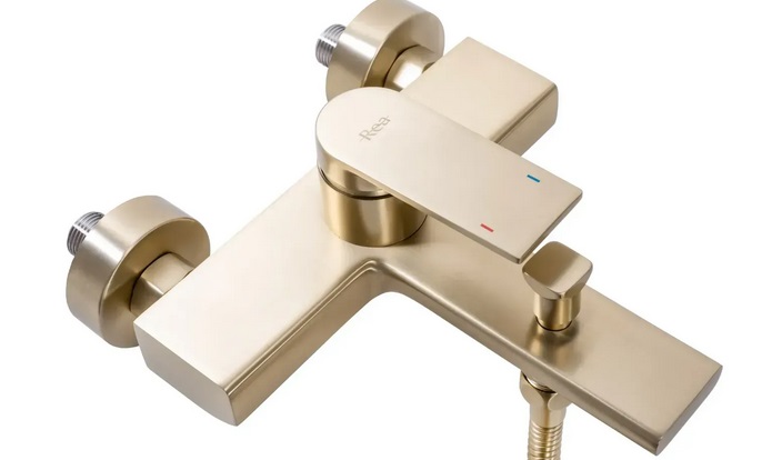 Змішувач для ванної кімнати Rea Verso одноважільний з душовим гарнітуром матове золото REA-B6565