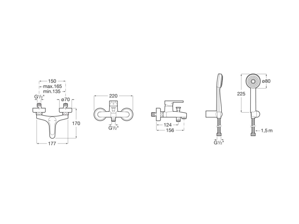 - Дивитися інші: Комплекти змішувач для ванної з душовим гарнітуром Roca
